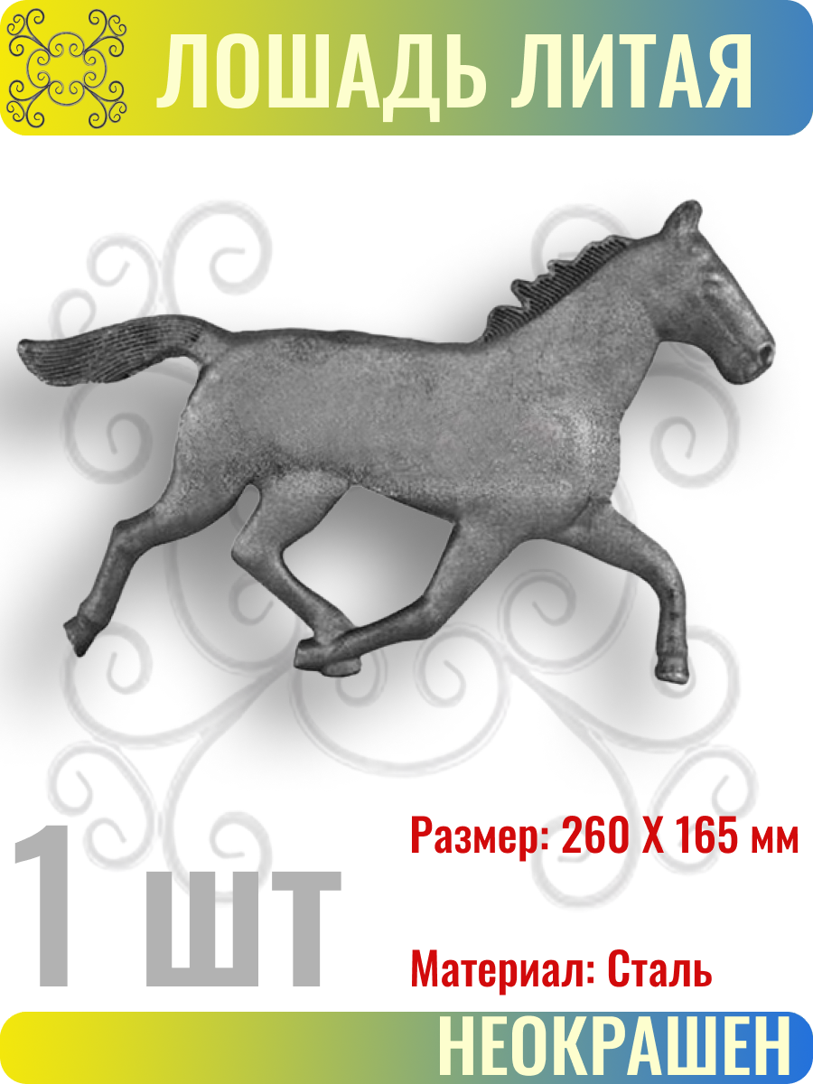Декоративный кованый элемент для изготовления ворот Лошадь литая 260х165 мм — 1 шт: сравнение цен, характеристики, фото, актуальное наличие и цены.