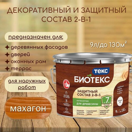 Декоративный лессирующий защитный состав 2-в-1 Bioteks для дерева Махагон 9л: сравнение цен, характеристики, фото, актуальное наличие и цены.