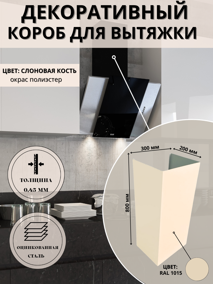 Декоративный металлический короб для кухонной вытяжки 300×200×800 мм, слоновая кость, RAL 1015: сравнение цен, характеристики, фото, актуальное наличие и цены.