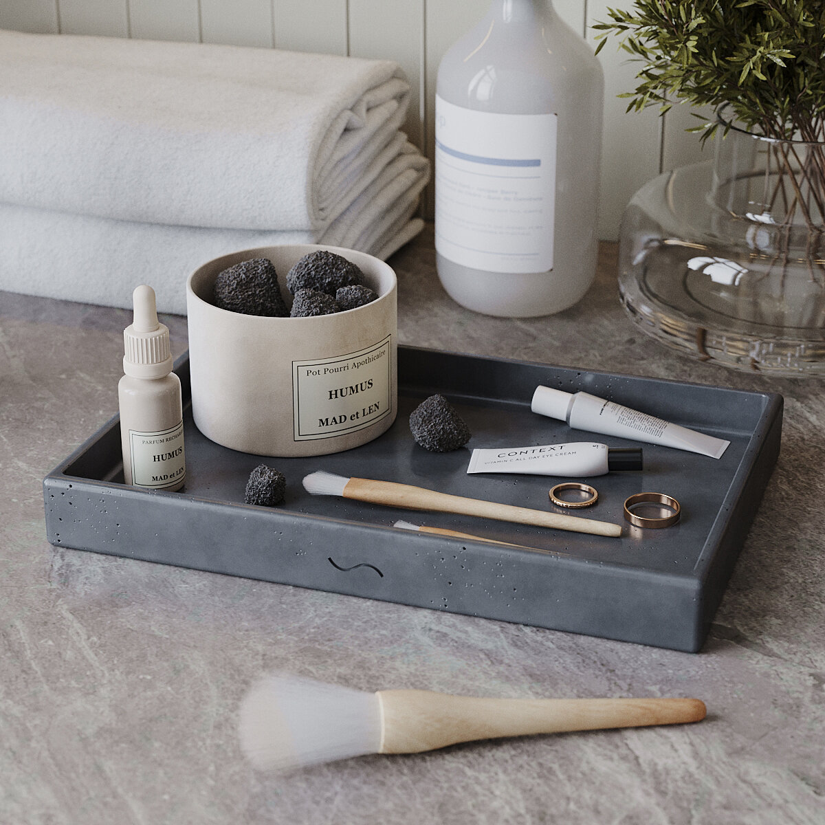 Декоративный поднос для ванной, органайзер для косметики Emily XL, 30×20 см, бетон, графитовый глянцевый: сравнение цен, характеристики, фото, актуальное наличие и цены.