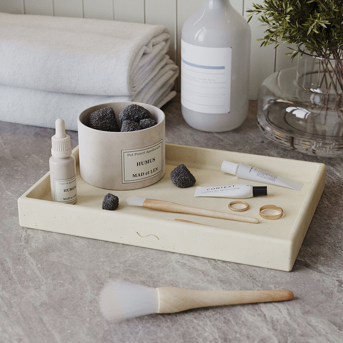 Декоративный поднос для ванной, органайзер для косметики Emily XL, 30×20 см, бетон, кремовый матовый: сравнение цен, характеристики, фото, актуальное наличие и цены.
