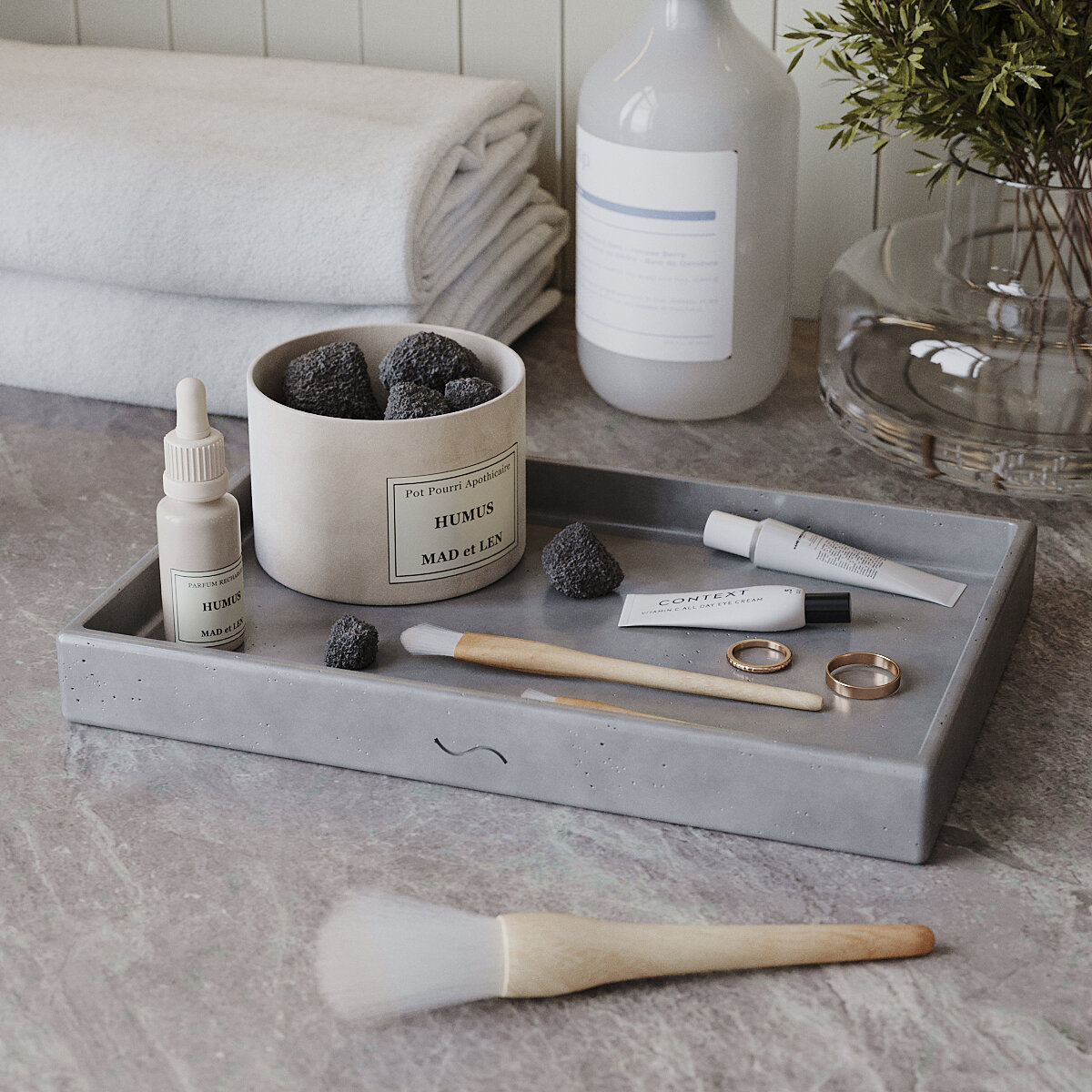 Декоративный поднос для ванной, органайзер для косметики Emily XL, 30×20 см, бетон, серый глянцевый