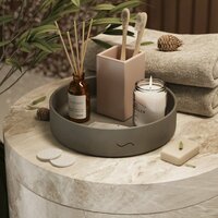 Подставка для ванной комнаты для косметики и аксессуаров из коллекции Astrid от MUSKO HOME - это универсальный декоративный поднос, изготовленный вручную из особо прочного бетона. Изделие обработано водоотталкивающим лаком, надёжно защищающим текстуру от воды и разводов.
