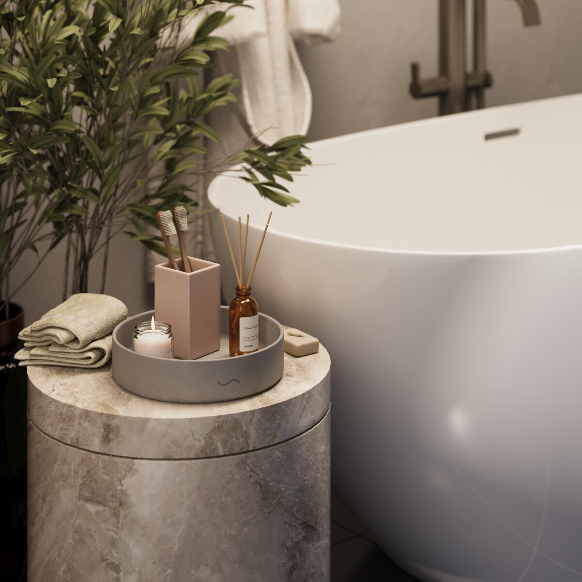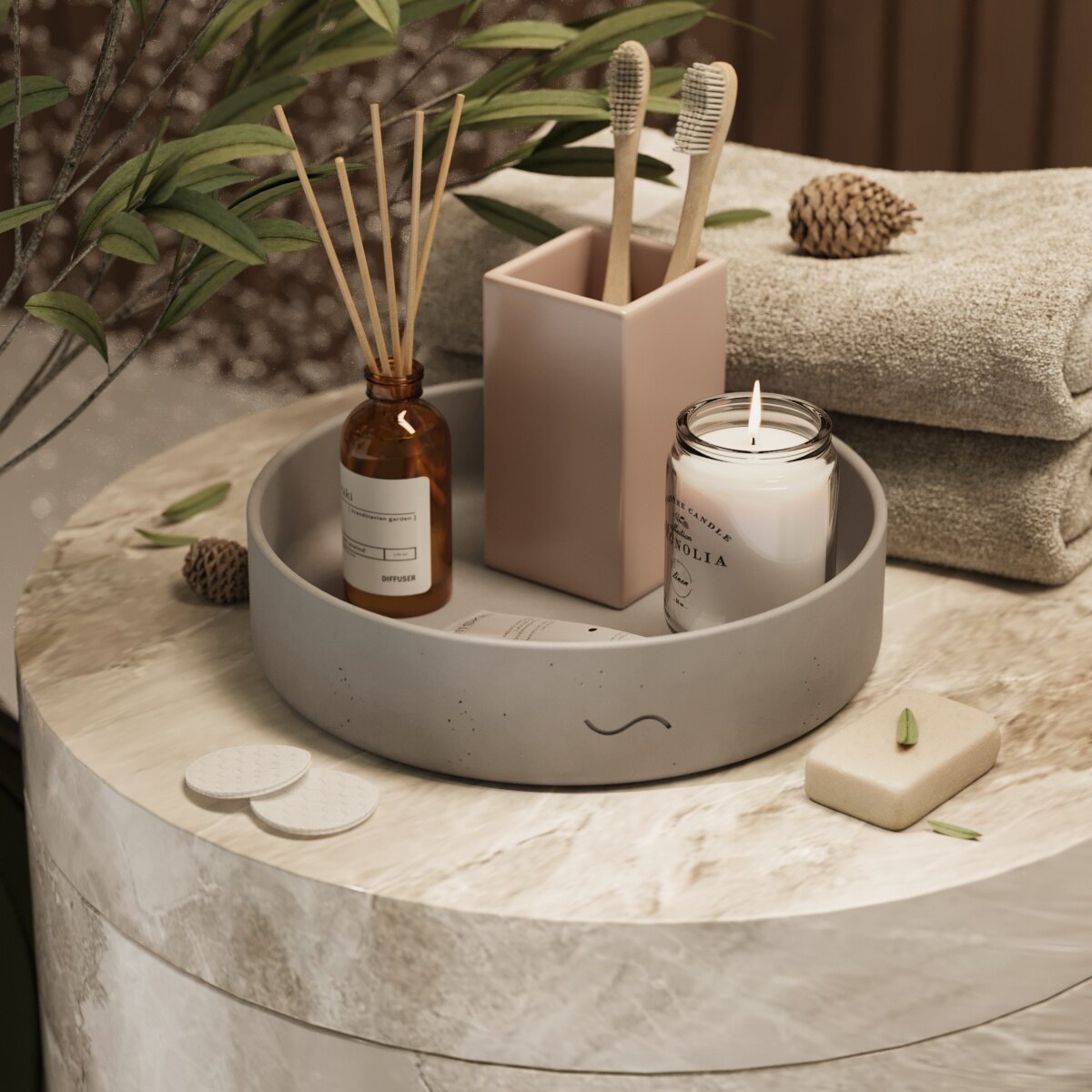 Декоративный поднос для ванной, подставка для косметики Astrid High M, 20×5см, бетон, серый матовый: сравнение цен, характеристики, фото, актуальное наличие и цены.