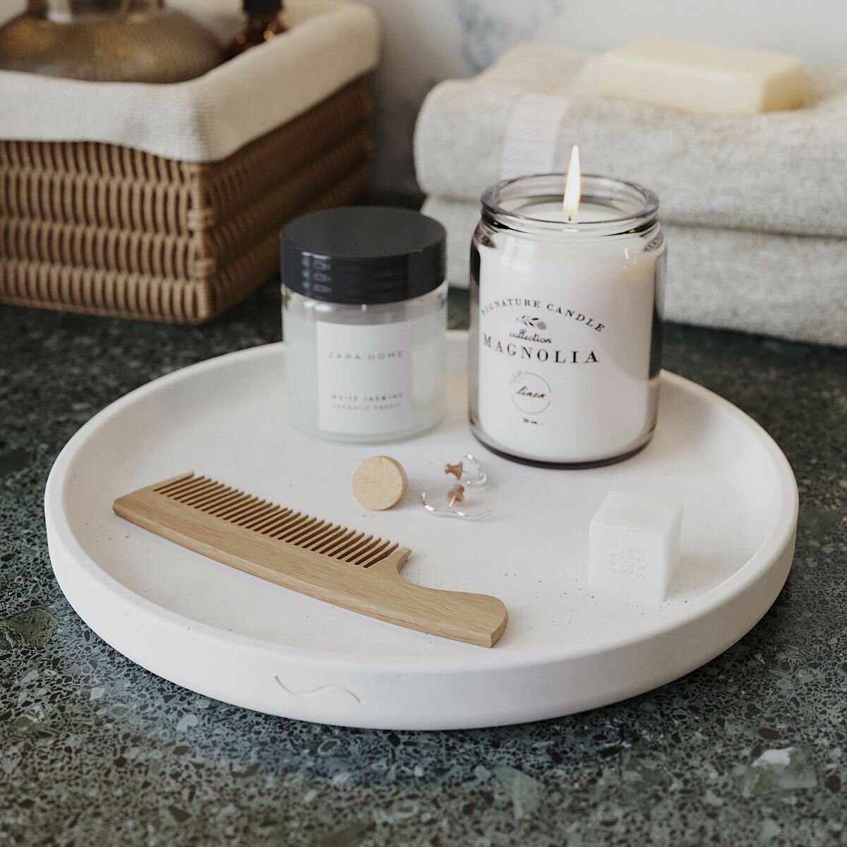 Декоративный поднос для ванной, подставка для косметики Astrid L, 25×25см, бетон, белый матовый: сравнение цен, характеристики, фото, актуальное наличие и цены.