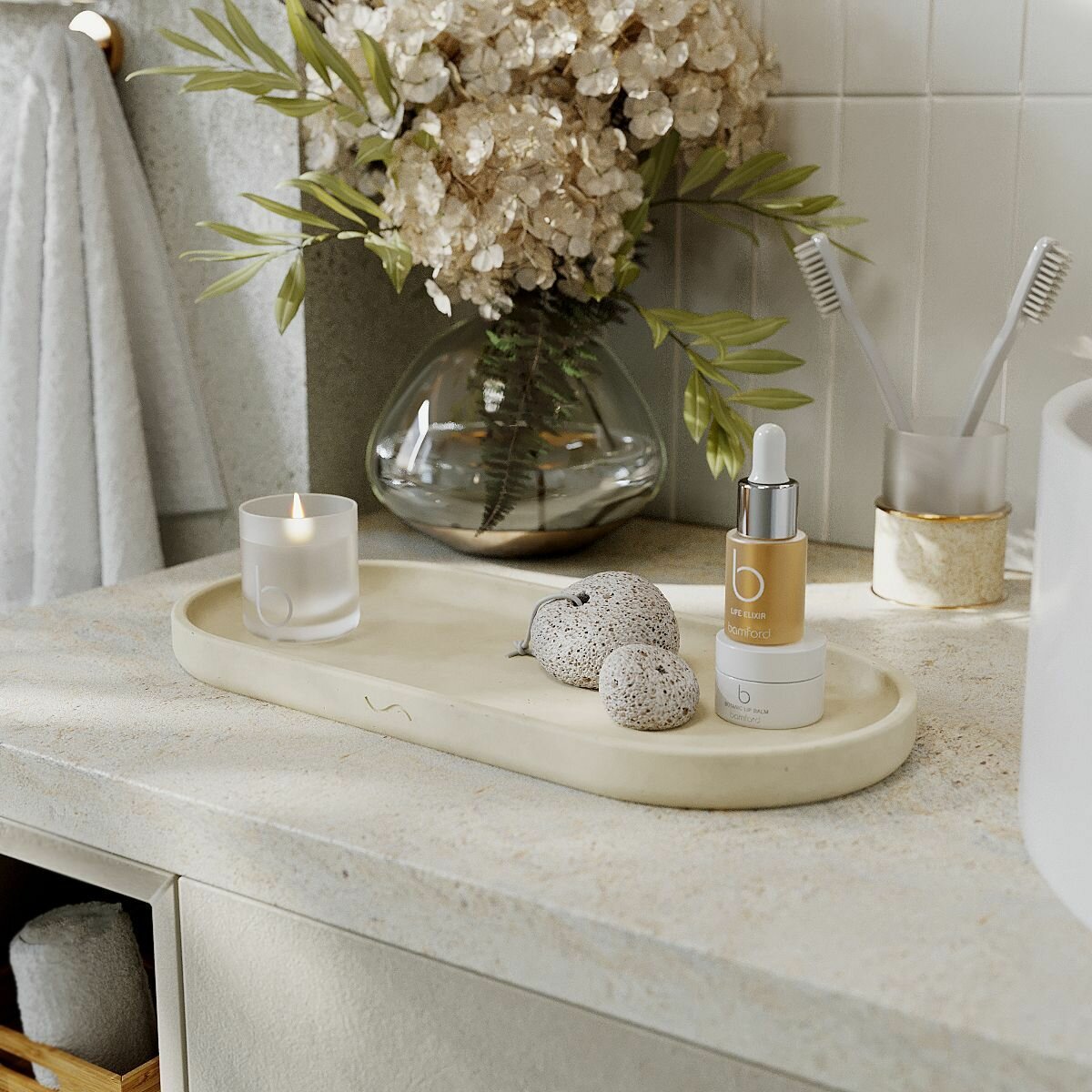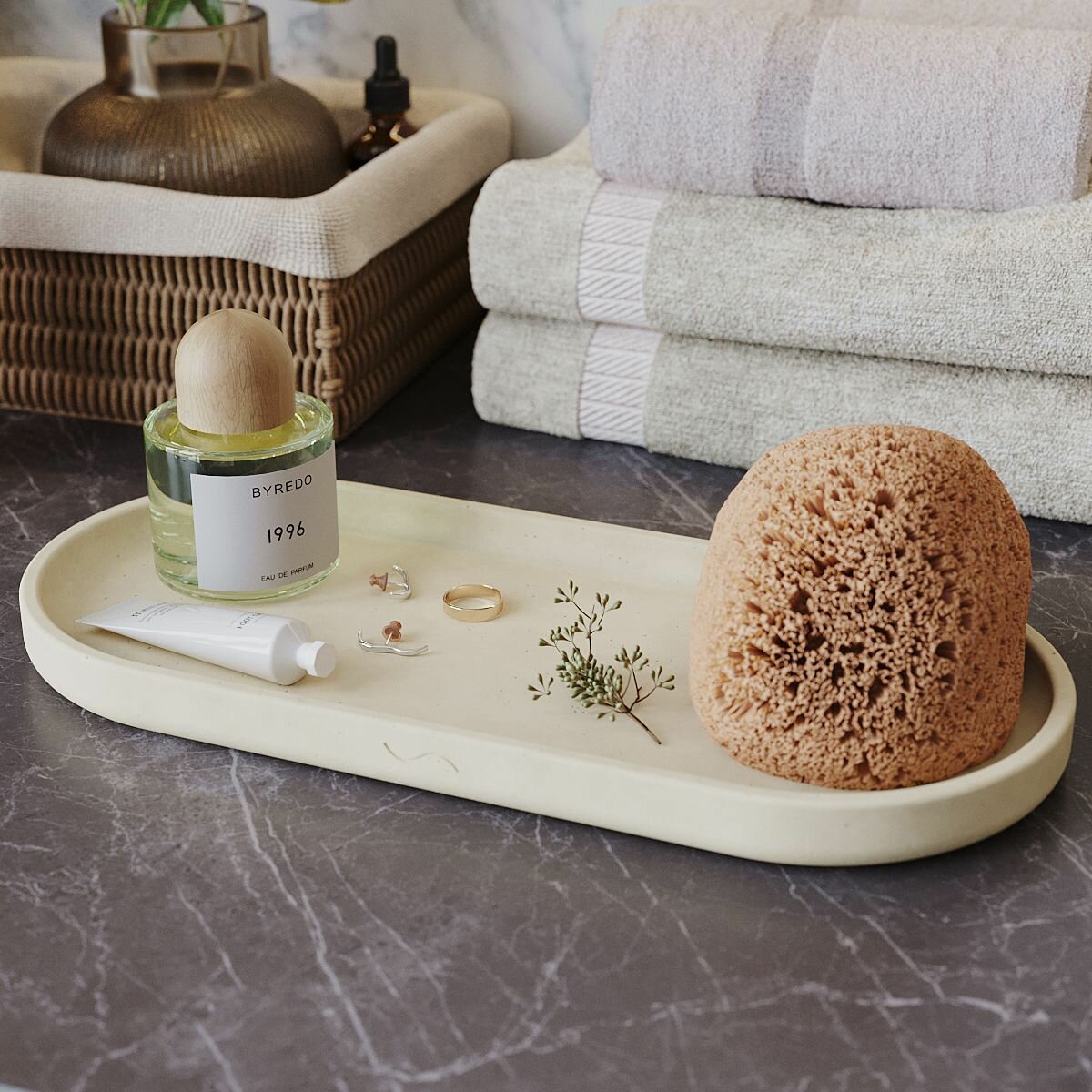 Декоративный поднос для ванной, подставка для косметики Astrid XL, 36×16,5см, бетон, кремовый матовый: сравнение цен, характеристики, фото, актуальное наличие и цены.