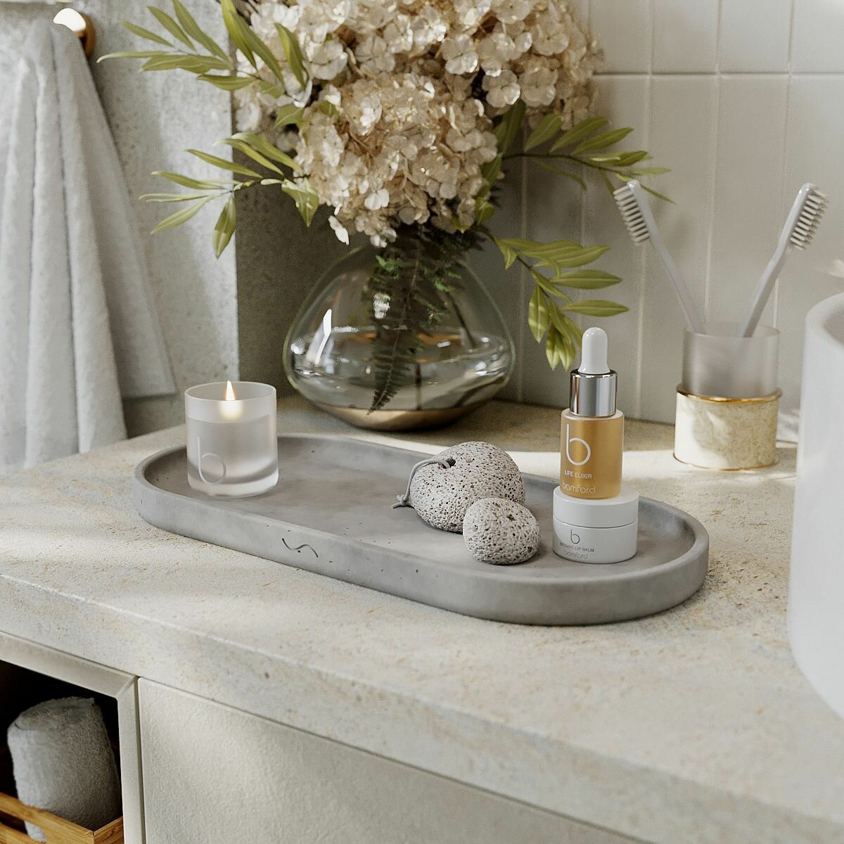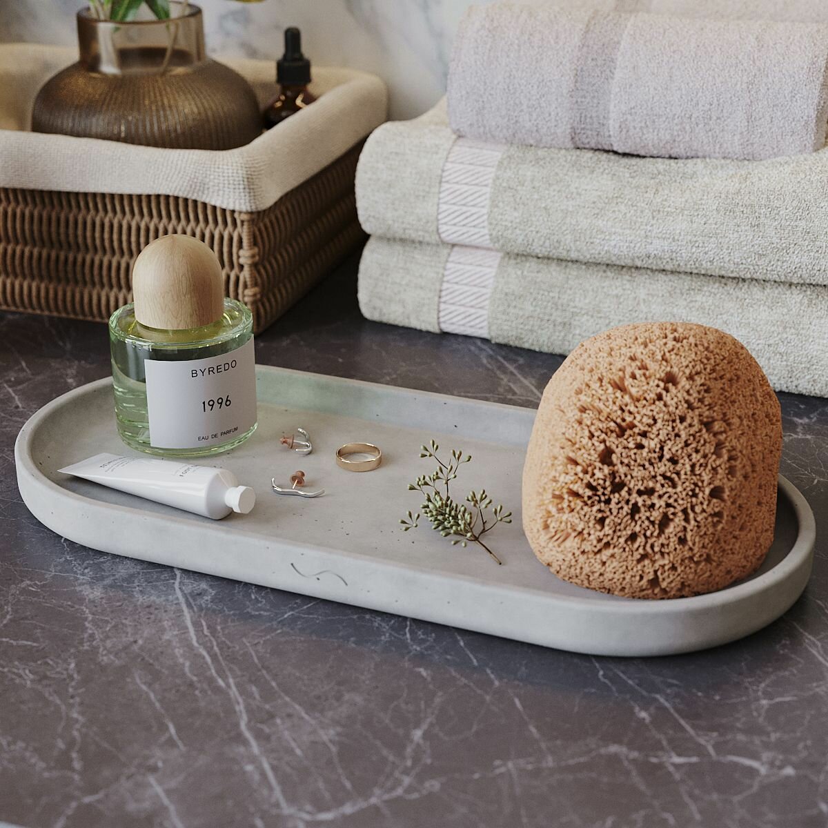 Декоративный поднос для ванной, подставка для косметики Astrid XL, 36×16,5см, бетон, серый матовый: сравнение цен, характеристики, фото, актуальное наличие и цены.