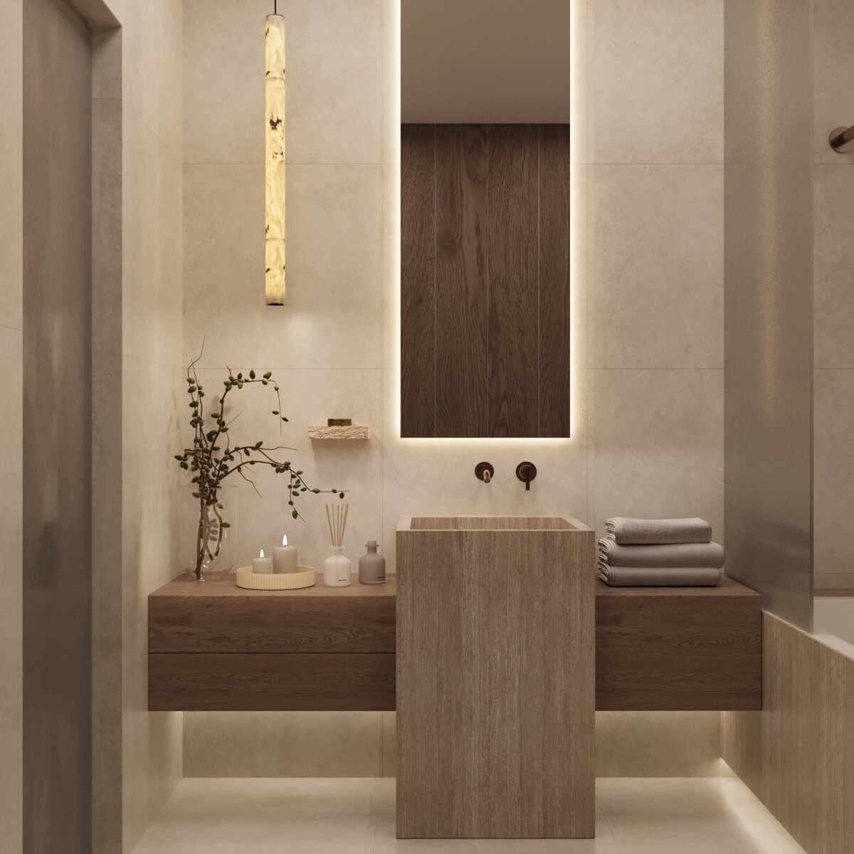 Купить Декоративный поднос для ванной, подставка для косметики Chloe High L 25×5см, бетон, кремовый глянцевый с доставкой по всей России.