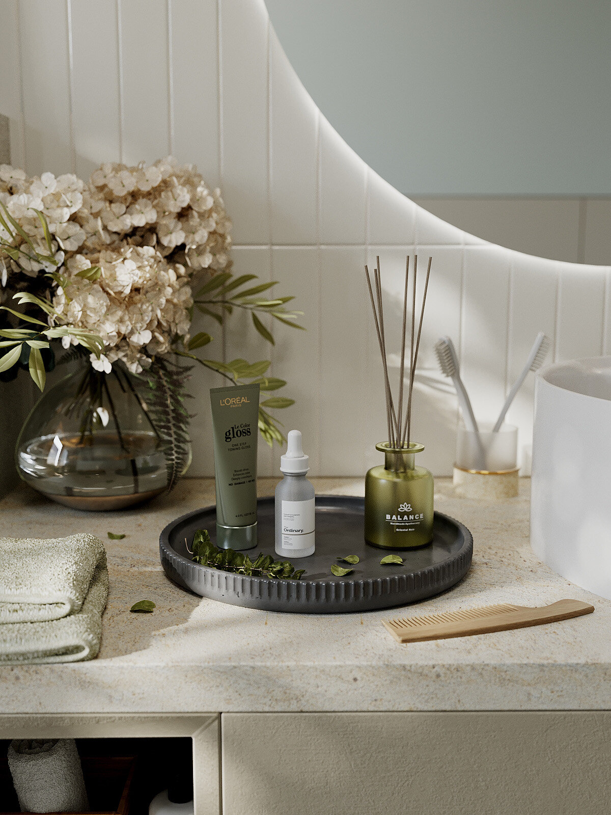 Декоративный поднос, подставка в ванную, органайзер для косметики и мелочей Chloe L, бетон, графитовый глянцевый: сравнение цен, характеристики, фото, актуальное наличие и цены.