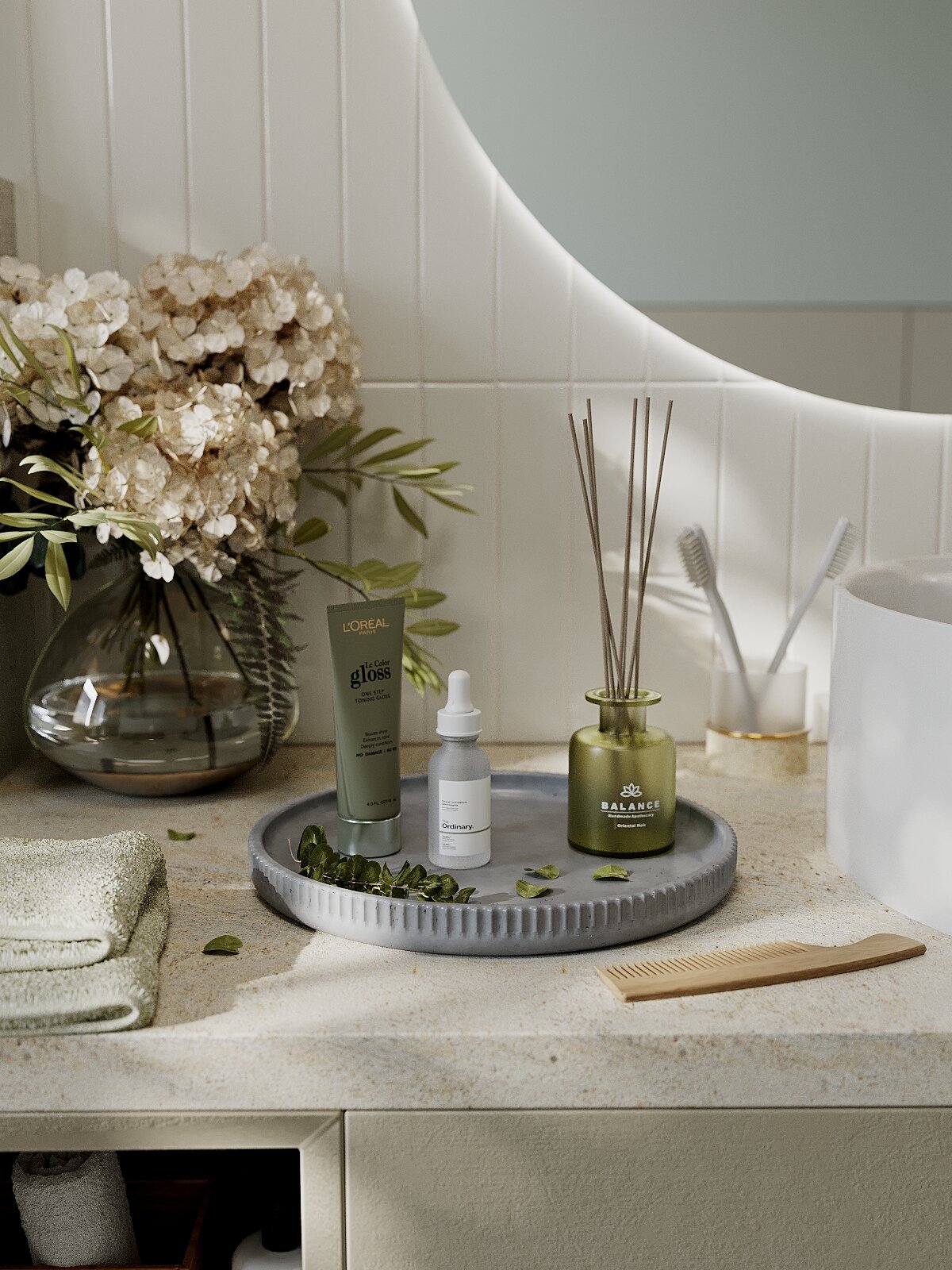 Декоративный поднос, подставка в ванную, органайзер для косметики и мелочей Chloe L, бетон, серый глянцевый: сравнение цен, характеристики, фото, актуальное наличие и цены.