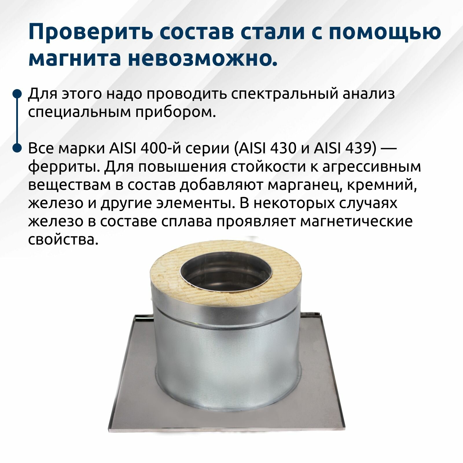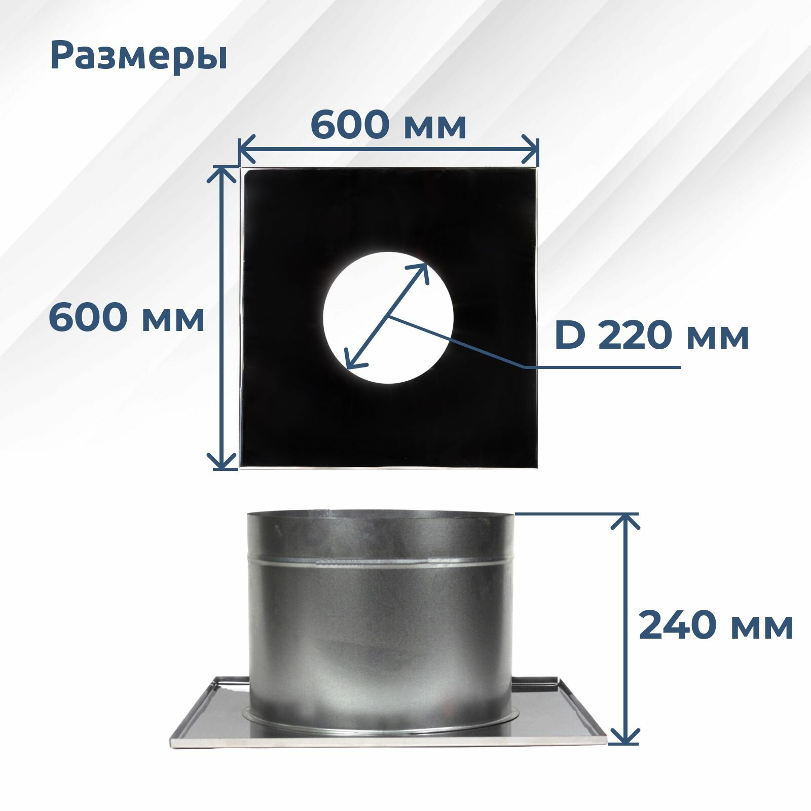 Предназначен для прохода дымохода через стены и потолочные перекрытия, имеет дополнительную изоляцию из негорючей плиты Минерита. Также создаёт эстетический вид при монтаже, закрывая технический проём.