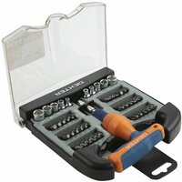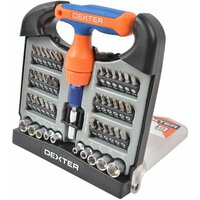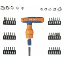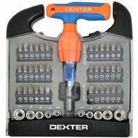 Отвёртка с набором насадок Dexter предназначена для сборки мебели, обслуживания автомобиля, а также ремонта бытового оборудования и техники. Т-образная форма рукоятки позволяет прилагать больше усилий в момент закручивания крепежа. Набор включает в себя шестигранные биты и торцевые головки из износостойкой хромованадиевой стали. Количество предметов — 48.
