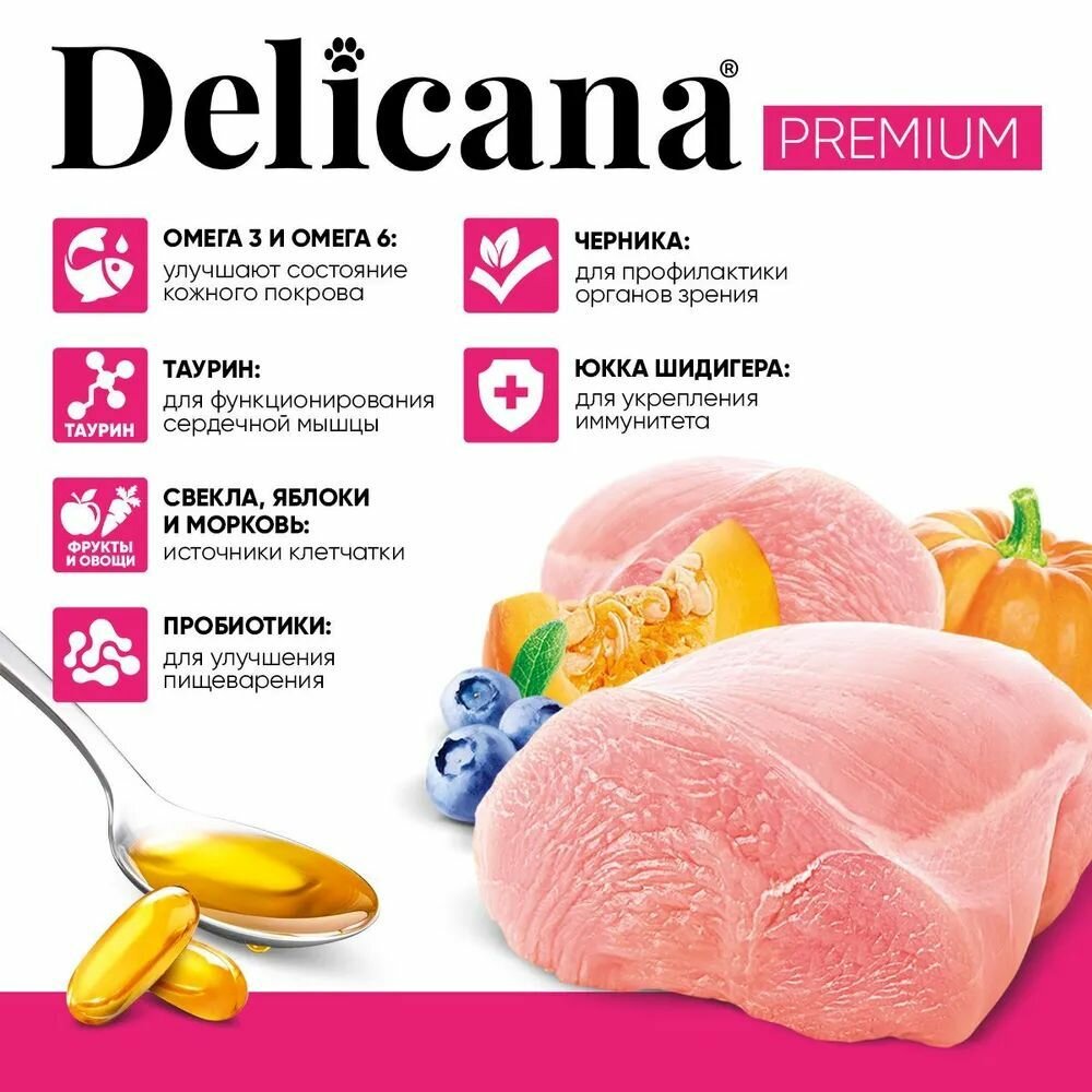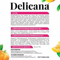 Корм Delicana не содержит ароматизаторов, глутамата натрия, сои, соли, загустителей, искусственных красителей, молочного белка, а также ГМО.