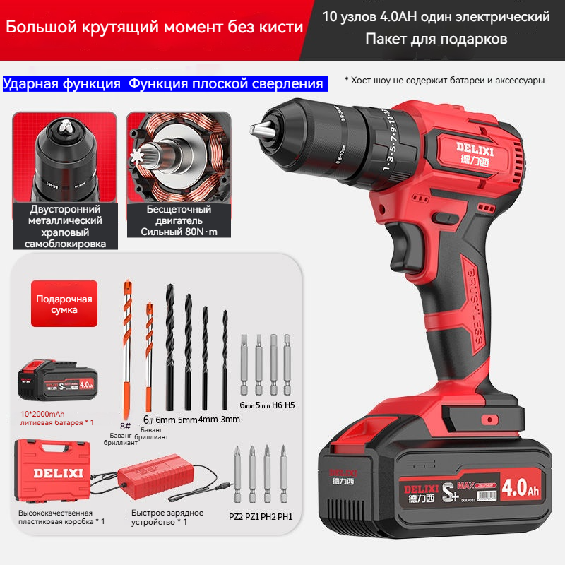 DELIXI ударная дрель с высоким крутящим моментом, бесщеточная, 18 В, 10 аккумуляторов по 4,0 Ач: сравнение цен, характеристики, фото, актуальное наличие и цены.