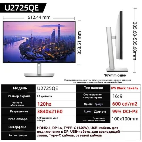 Dell 27″ Монитор UltraSharp U2725QE, 4K / 120 Гц, черный, серый металлик 27 UltraSharp U2725QE 4K / 120hz: сравнение цен, характеристики, фото, актуальное наличие и цены.