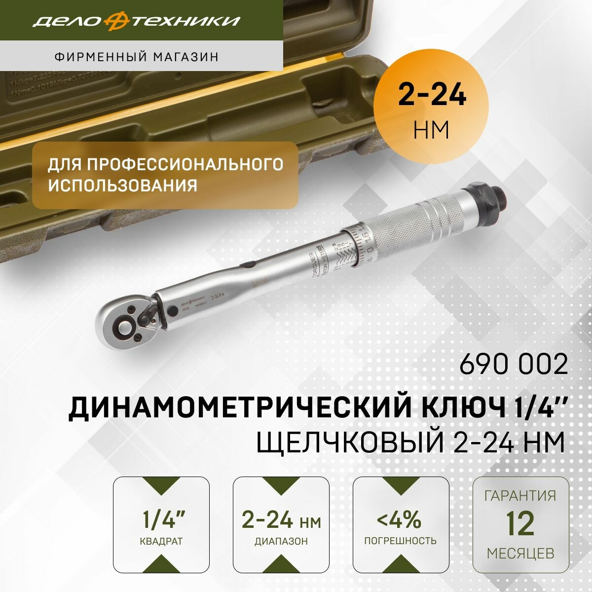 Купить Ключ динамометрический 1/4″ щелчковый 2-24 Нм, Дело Техники, 690002 TJ с доставкой по всей России. Ключ динамометрический 1/4″ щелчковый 2-24 Нм, Дело Техники, 690002 TJ: сравнение цен, характеристики, фото, актуальное наличие и цены.