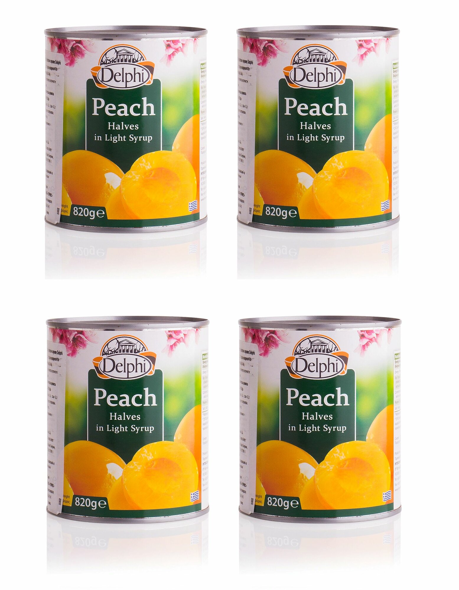 DELPHI персики половинки в сиропе 4 банки по 820