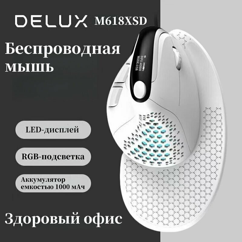 DELUX M618XSD Беспроводная мышь, Вертикальная мышь, Офисная мышь, Белая: сравнение цен, характеристики, фото, актуальное наличие и цены.