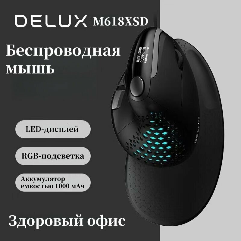 Купить DELUX M618XSD Беспроводная мышь, Вертикальная мышь, Офисная мышь, Черная с доставкой по всей России.