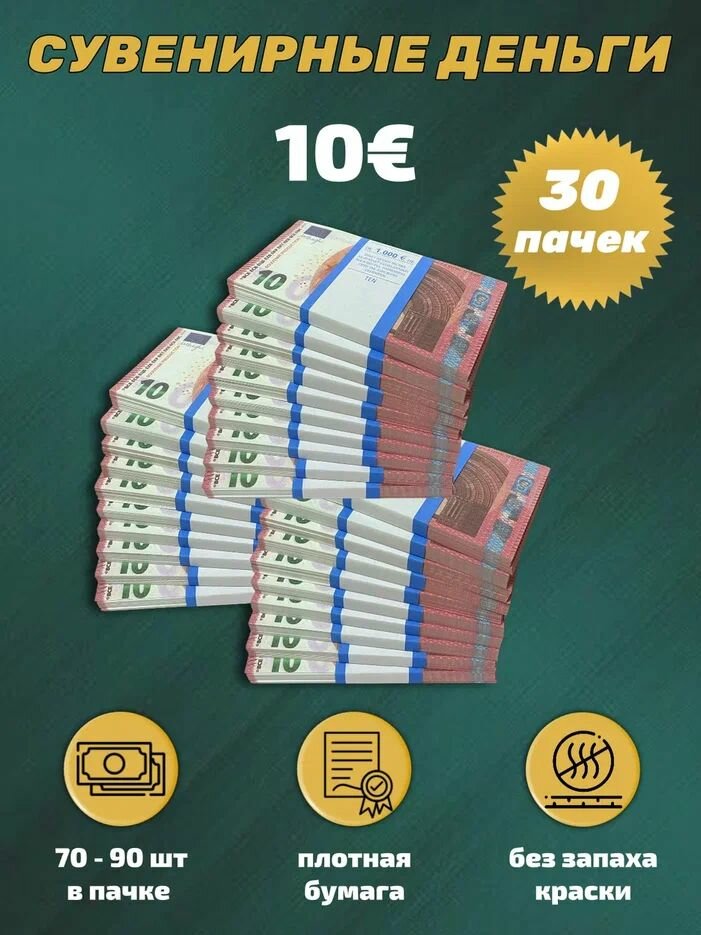 Деньги фальшивые, фейковые, сувенирные игрушечные купюры номинал 10 евро, 30 пачек: сравнение цен, характеристики, фото, актуальное наличие и цены.