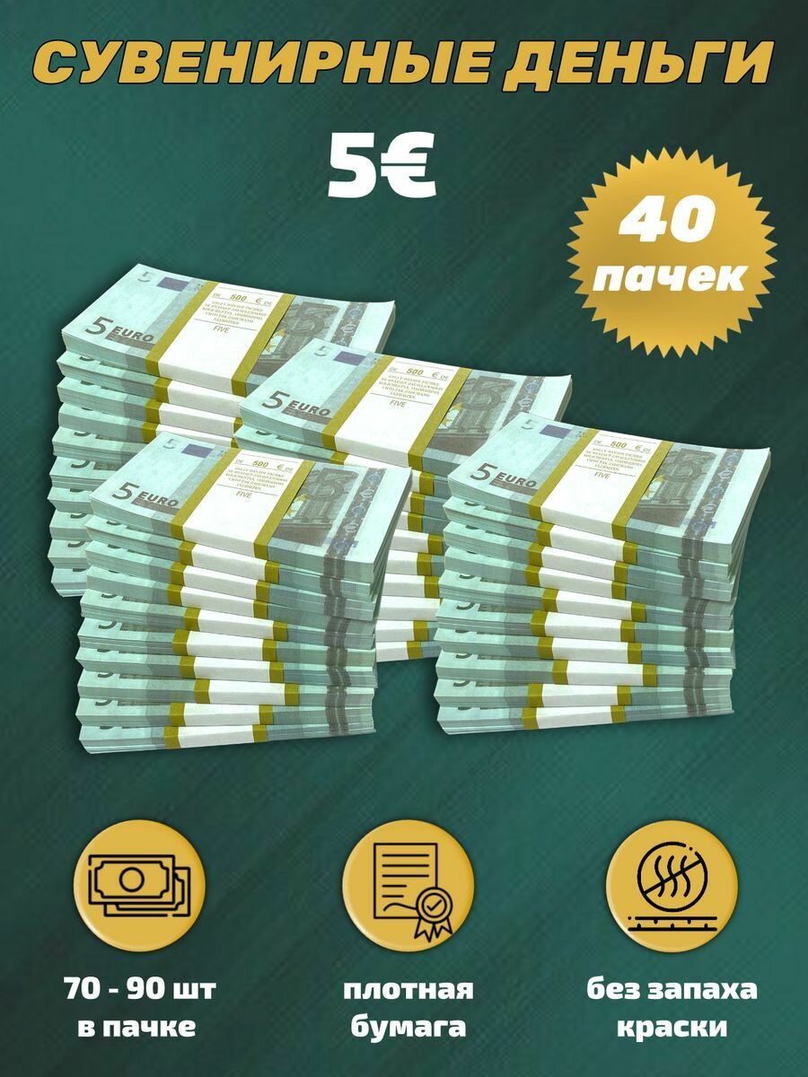 Деньги фальшивые, фейковые, сувенирные игрушечные купюры номинал 5 евро , 40 пачек: сравнение цен, характеристики, фото, актуальное наличие и цены.