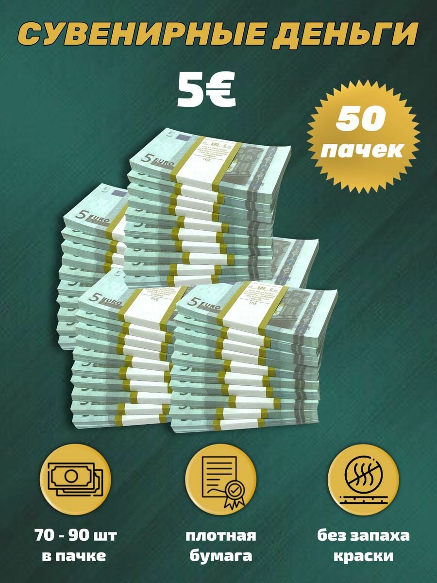 Деньги фальшивые, фейковые, сувенирные игрушечные купюры номинал 5 евро , 50 пачек: сравнение цен, характеристики, фото, актуальное наличие и цены.