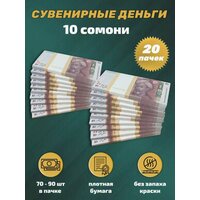Купить Деньги фальшивые, сувенирные, игрушечные, фейковые купюры 10 таджикских сомони , 20 пачек с доставкой по всей России.