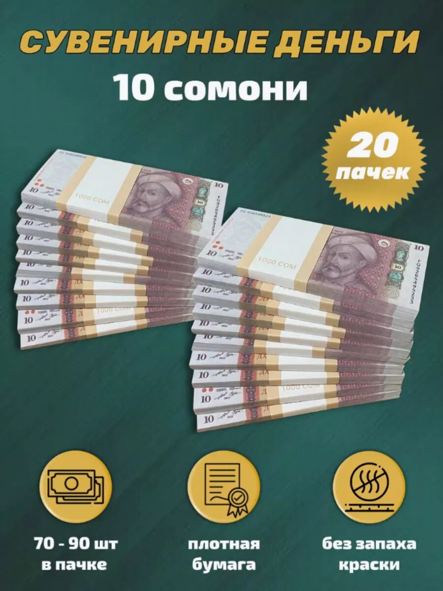 Деньги фальшивые, сувенирные, игрушечные, фейковые купюры 10 таджикских сомони , 20 пачек: сравнение цен, характеристики, фото, актуальное наличие и цены.