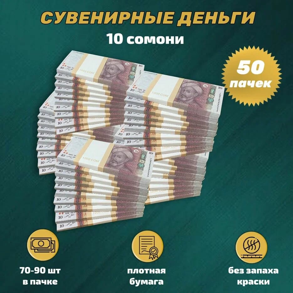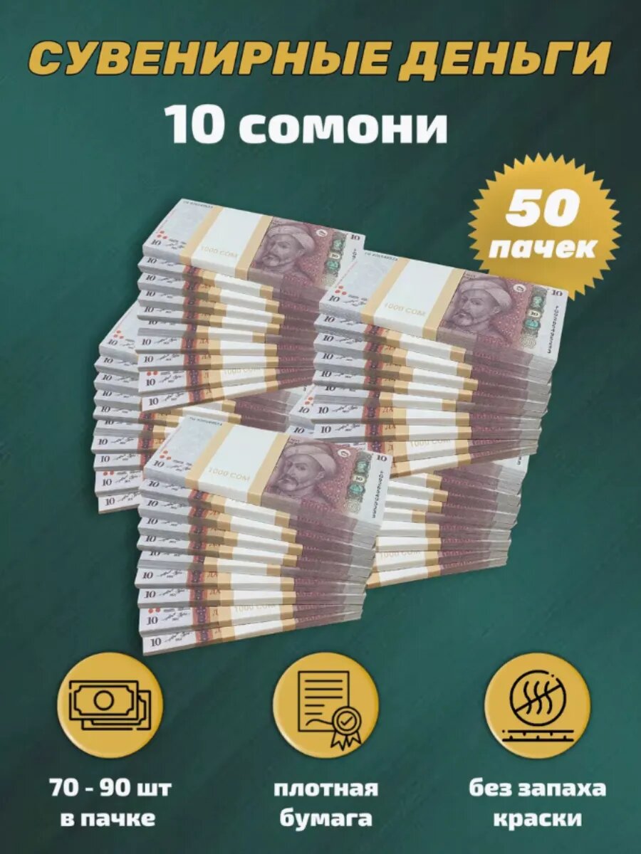 Деньги фальшивые, сувенирные, игрушечные, фейковые купюры 10 таджикских сомони , 50 пачек: сравнение цен, характеристики, фото, актуальное наличие и цены.