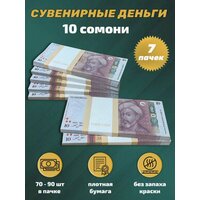 Купить Деньги фальшивые, сувенирные, игрушечные, фейковые купюры 10 таджикских сомони , 7 пачек с доставкой по всей России.
