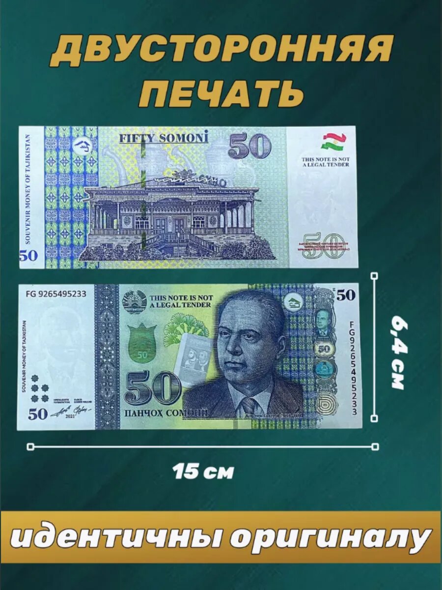 Деньги фальшивые, сувенирные, игрушечные, фейковые купюры 50 таджикских сомони , 20 пачек: сравнение цен, характеристики, фото, актуальное наличие и цены.