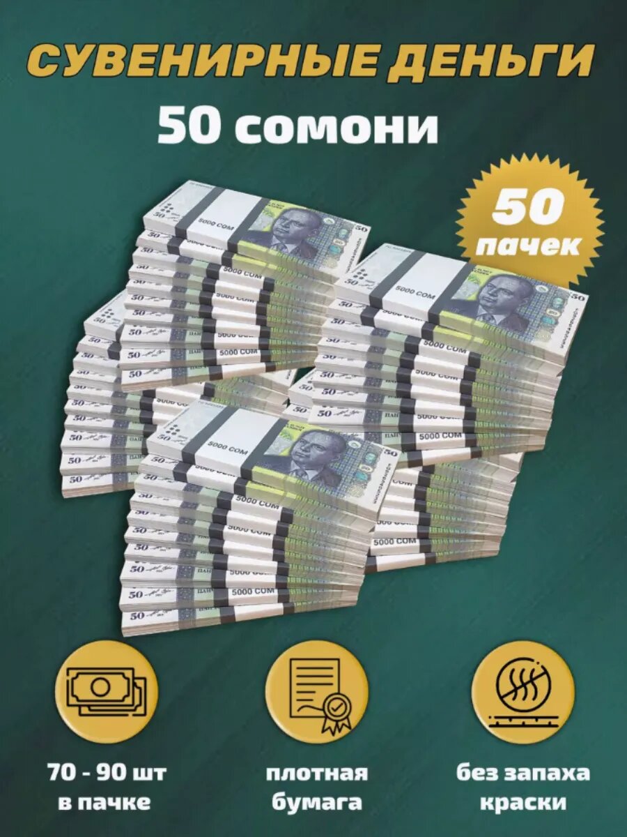 Деньги фальшивые, сувенирные, игрушечные, фейковые купюры 50 таджикских сомони , 50 пачек: сравнение цен, характеристики, фото, актуальное наличие и цены.