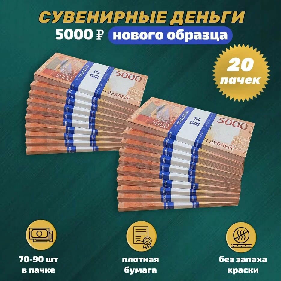 Деньги фальшивые сувенирные игрушечные фейковые купюры 5000 рублей нового образца, 20 пачек: сравнение цен, характеристики, фото, актуальное наличие и цены.