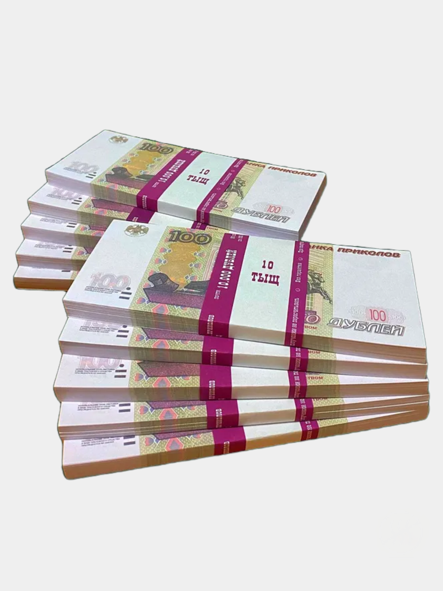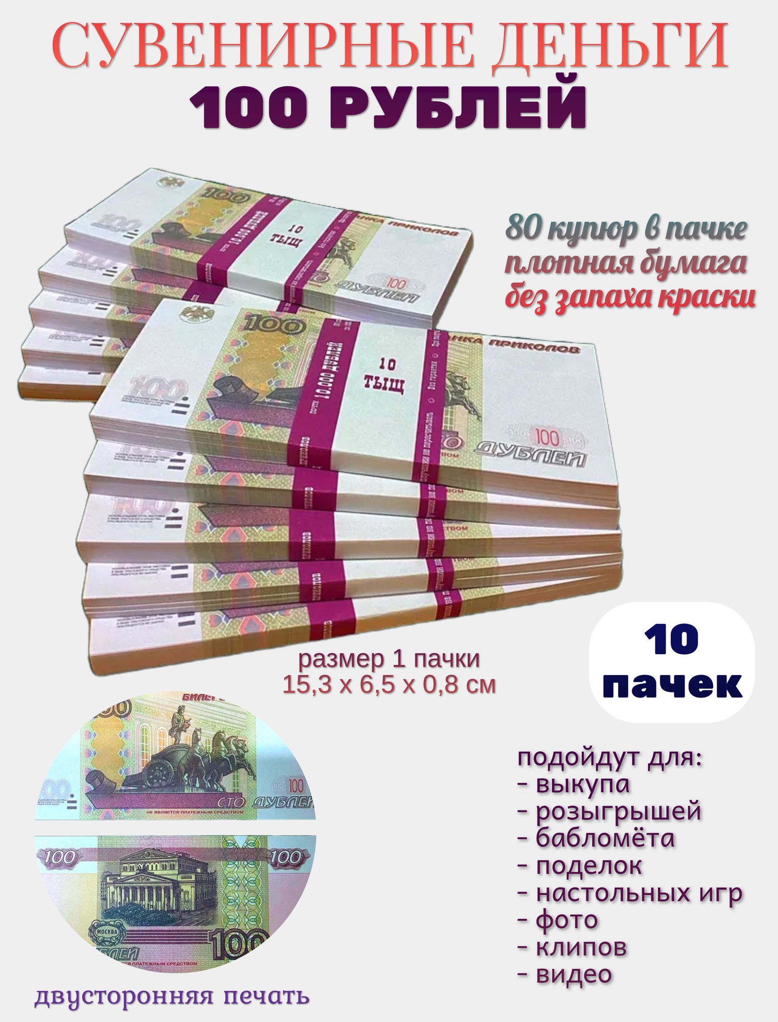 Деньги сувенирные 100 рублей игрушечные купюры, 10 пачек: сравнение цен, характеристики, фото, актуальное наличие и цены.