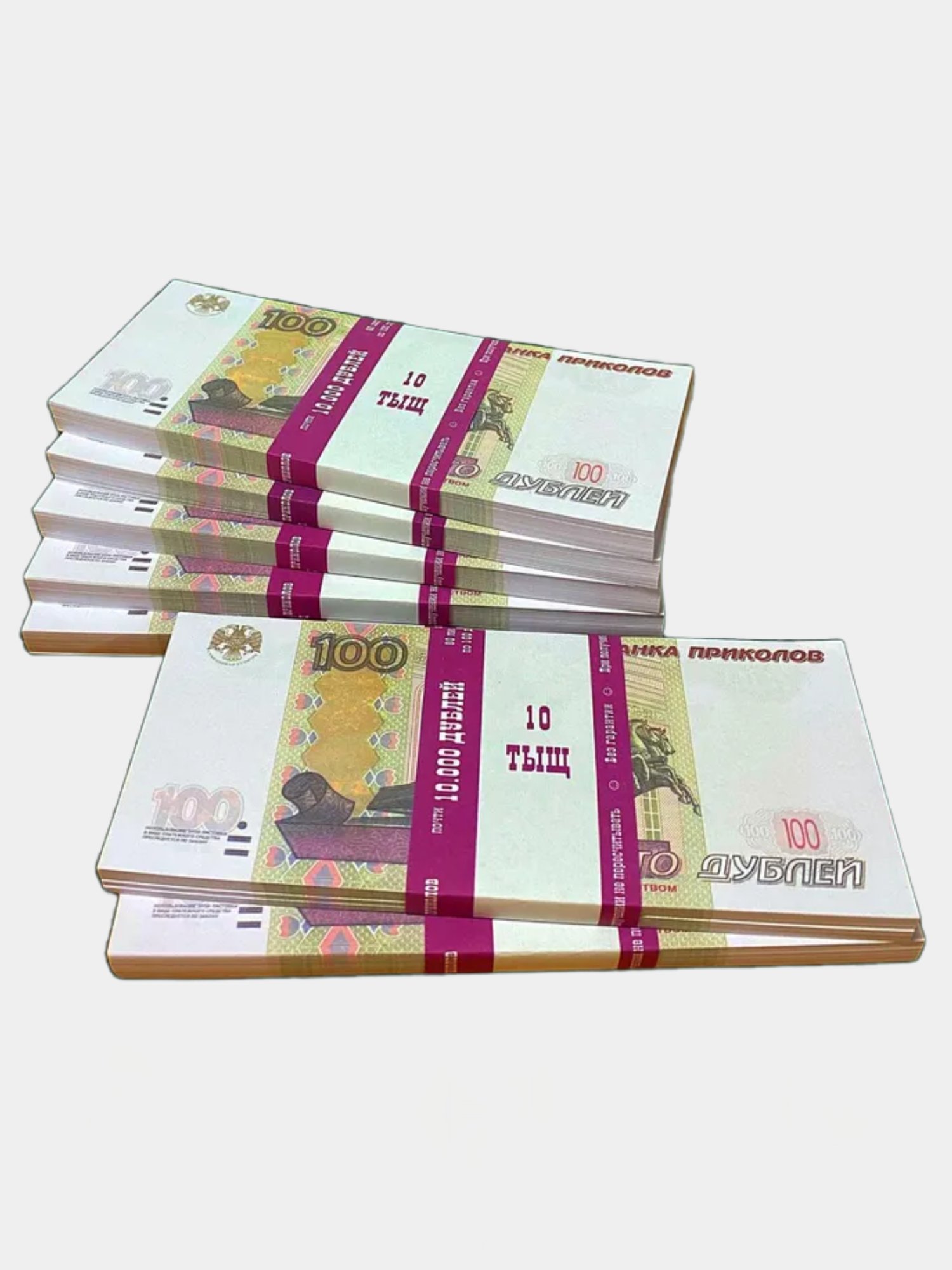 Деньги сувенирные 100 рублей игрушечные купюры, 7 пачек: сравнение цен, характеристики, фото, актуальное наличие и цены.