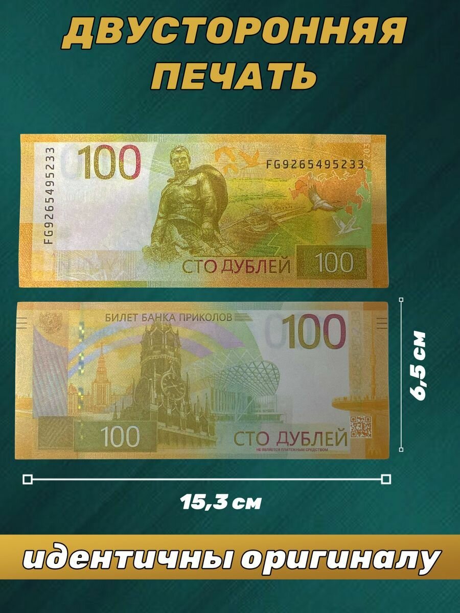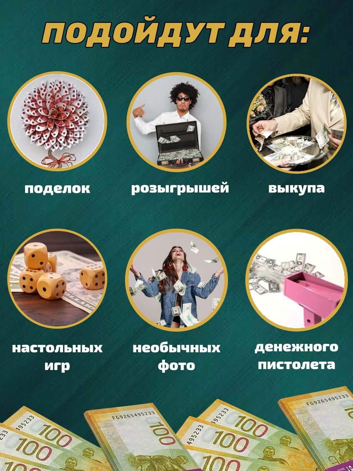 Уникальные игрушечные ненастоящие купюры – идеальный сувенир для настоящих поклонников денег! Насыщенные цвета, проработанные детали и неповторимый дизайн делают эти маленькие копии банкнот по-настоящему особенными. Независимо от возраста, каждый найдет в них что-то интересное. Дети будут в восторге от возможности играть в магазин или банкомат, учиться считать и развивать мелкую моторику рук. А взрослые оценят тонкое чувство юмора, которое привносят эти игрушечные купюры в повседневную жизнь. Подарите такой сувенир своим друзьям, коллегам или близким – этот оригинальный презент точно вызовет улыбку и запомнится на долгие годы. Они подойдут для вечеринок, их можно использовать отдельно или с баблометом. Также заменят настоящие деньги на выкупе невесты на свадьбе, в различных видеосъемках для блогеров. Да и вообще на любой праздник - праздник - годовщину, юбилей, день рождения, Новый год. Билеты банка приколов подойдут как атрибутика для фотосессии, для тематических вечеринок. Они прикольный подарок для взрослых, забавный сюрприз или как сувенир друзьям.