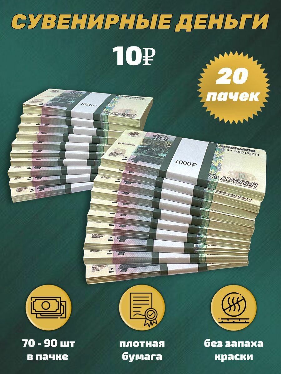 Деньги сувенирные игрушечные купюры номинал 10 рублей , 20 пачек: сравнение цен, характеристики, фото, актуальное наличие и цены.