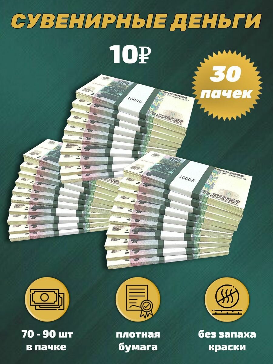 Деньги сувенирные игрушечные купюры номинал 10 рублей , 30 пачек: сравнение цен, характеристики, фото, актуальное наличие и цены.
