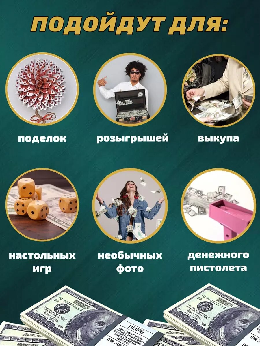 Хотите порадовать своих близких и друзей ярким и увлекательным подарком? Представляем Вам наши фантастические игрушечные деньги доллары , которые станут настоящей находкой для Вас! Собственное производство и детальная проработка каждого элемента сувенирных денег делает их похожими на настоящие! Наш увлекательный набор фальшивых денег станет идеальным дополнением к различным играм в магазин, ресторан или банк. Реалистичные детали на каждой купюре создают иллюзию настоящих денег, позволяя не только повеселиться, но и развить воображение и фантазию. Каждая купюра яркая и безопасна для использования. Наши игрушечные деньги сделаны из высококачественных материалов, что позволяет сохранять свою привлекательность и целостность, выдерживая многочисленные игры.