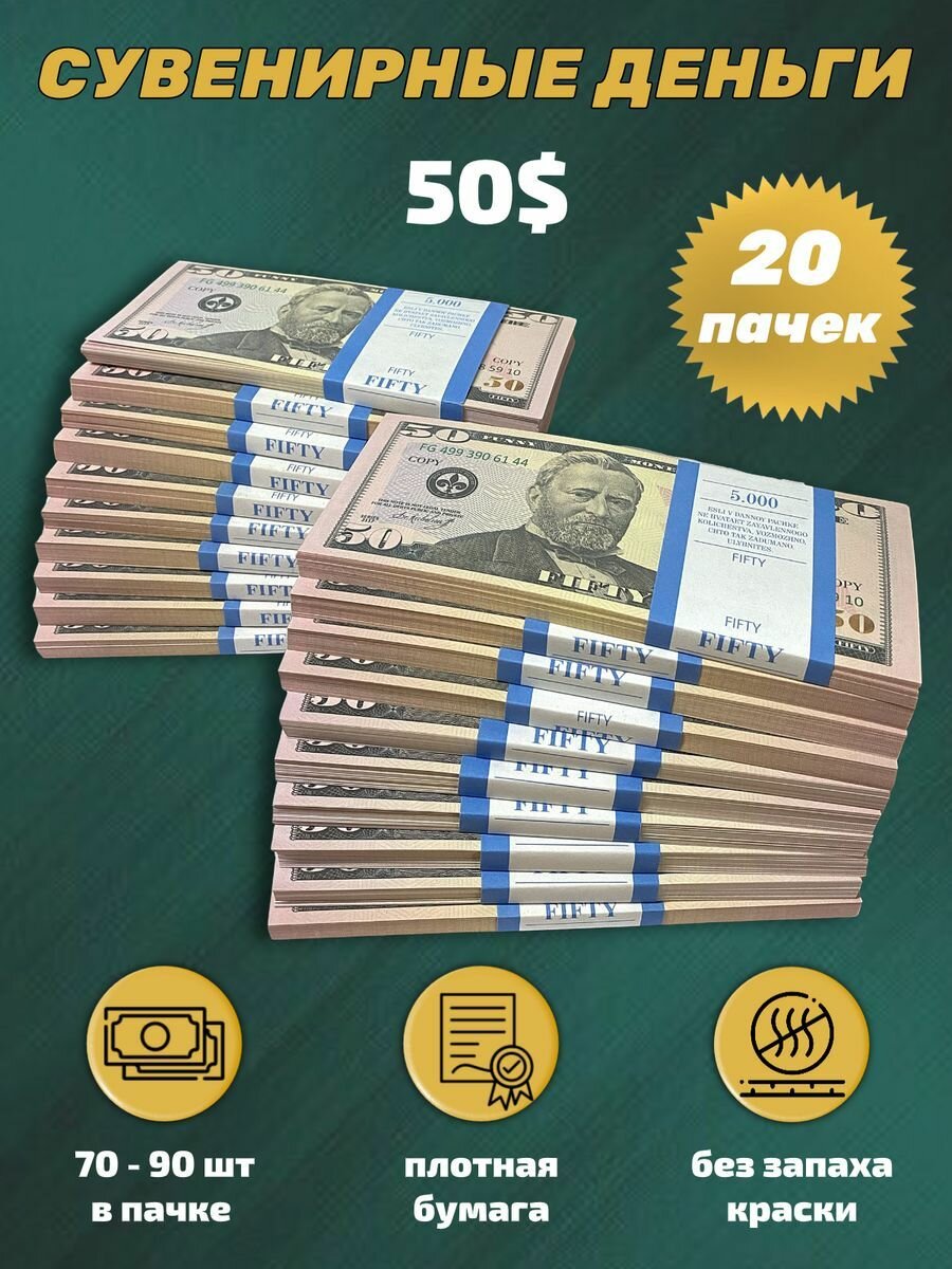 Деньги сувенирные игрушечные купюры номинал 50 долларов , 20 пачек: сравнение цен, характеристики, фото, актуальное наличие и цены.