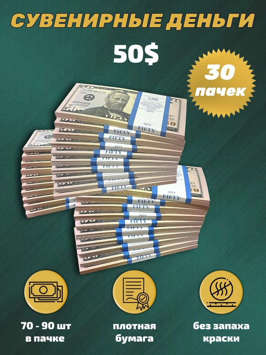 Деньги сувенирные игрушечные купюры номинал 50 долларов , 30 пачек: сравнение цен, характеристики, фото, актуальное наличие и цены.