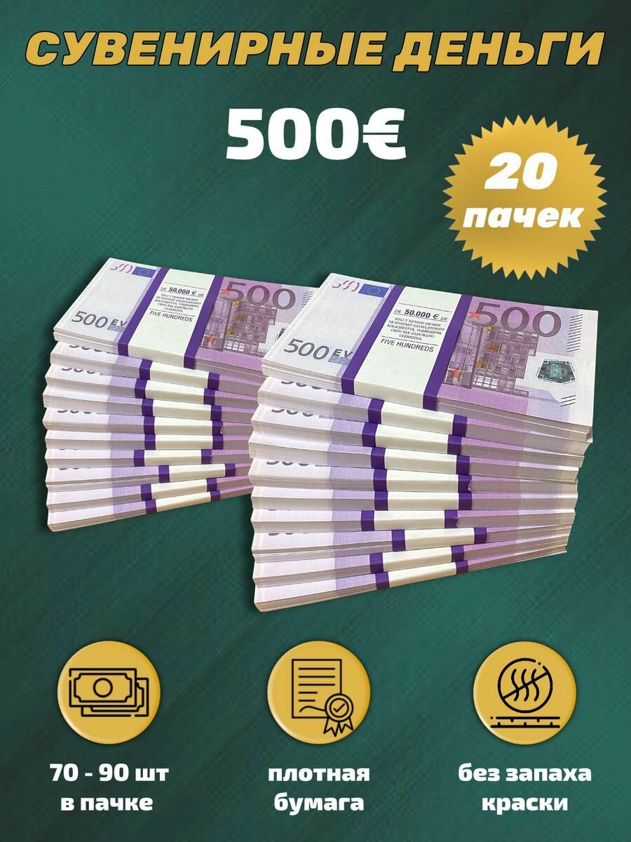 Деньги фальшивые, фейковые, сувенирные игрушечные купюры номинал 500 евро , 20 пачек: сравнение цен, характеристики, фото, актуальное наличие и цены.