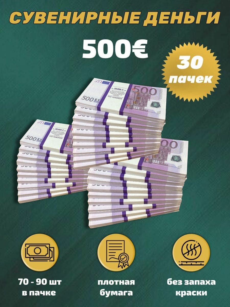 Деньги фальшивые, фейковые, сувенирные игрушечные купюры номинал 500 евро , 30 пачек: сравнение цен, характеристики, фото, актуальное наличие и цены.