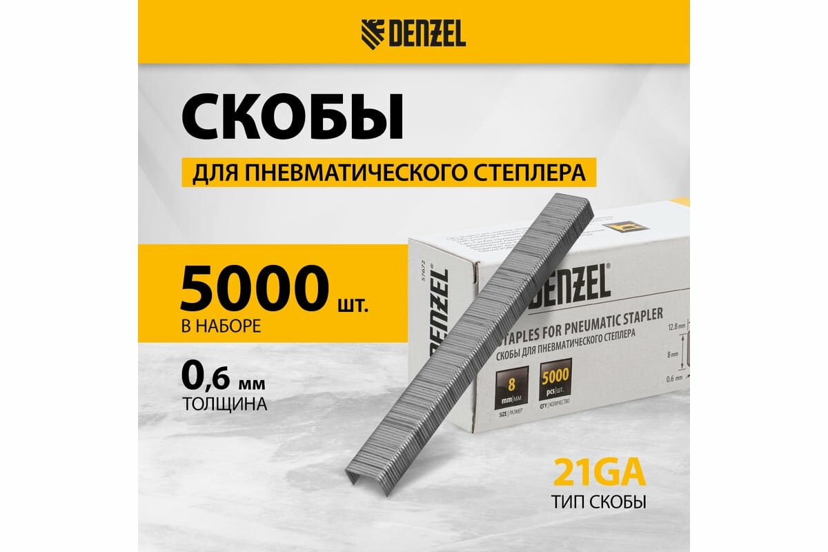 Denzel Скобы 21ga для пнев. степл, 8мм, шир. — 0,95мм, тол. — 0,6мм, шир. скобы — 12,8мм, 5000шт 57672: сравнение цен, характеристики, фото, актуальное наличие и цены.