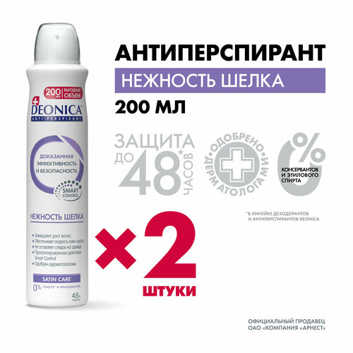 Уникальный антиперспирант Deonica "Нежность шелка" благодаря входящему в состав натуральному экстракту замедляет рост нежелательных волос и обеспечивает надежную защиту и свежесть на 48 часов. После применения антиперспиранта на протяжении месяца новые волоски начинают расти медленнее, становятся тоньше, а при условии регулярной эпиляции приобретают округлые края. Эффективная защита от пота и запаха в течение 48 часов. Замедляет рост волос благодаря уникальному растительному комплексу в составе. Обеспечивает гладкость кожи надолго. Одобрен дерматологами.0% спирта и парабенов. Содержит термически активированный хлоргидрат алюминия, который не забивает поры и эффективно справляется с потом и запахом без вреда для здоровья. Придает коже невероятную мягкость благодаря ингредиенту Бисаболол (получают из аптечной ромашки), который смягчает кожу и помогает справиться с раздражениями. Deonica – антиперспирант, который гарантированно подарит Вам защиту и ощущение свежести в течение дня! Рецептуры всех антиперспирантов Deonica разработаны в Швейцарии и сочетают в себе натуральные и безопасные активные компоненты, а также высокоэффективную защиту. Одобренная дерматологами формула подходит для людей с чувствительной кожей. Натуральные активные компоненты в составе антиперспиранта гарантировано защитят от неприятного запаха, а особая формула не оставит белых следов на одежде. Высокая эффективность Deonica подтверждена клиническими испытаниями и потребительскими тестами в европейских лабораториях. Сбалансированная линейка средств рассчитана на физиологические особенности активности женщин и мужчин, на активность в течение дня и особенности кожи. С инновационным антиперспирантом нового поколения Deonica Вы сможете чувствовать себя уверенно при любых обстоятельствах.