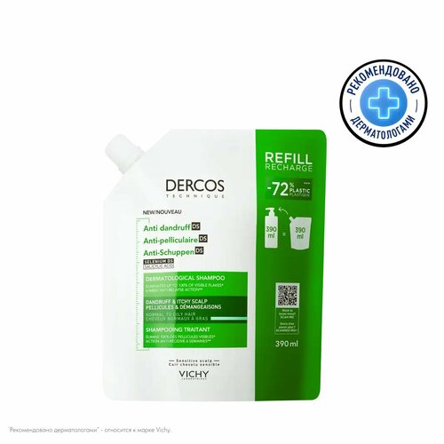 Dercos DS Шампунь против перхоти для нормальных и жирных волос Eco-Refill см/блок 400 мл 1 шт: сравнение цен, характеристики, фото, актуальное наличие и цены.