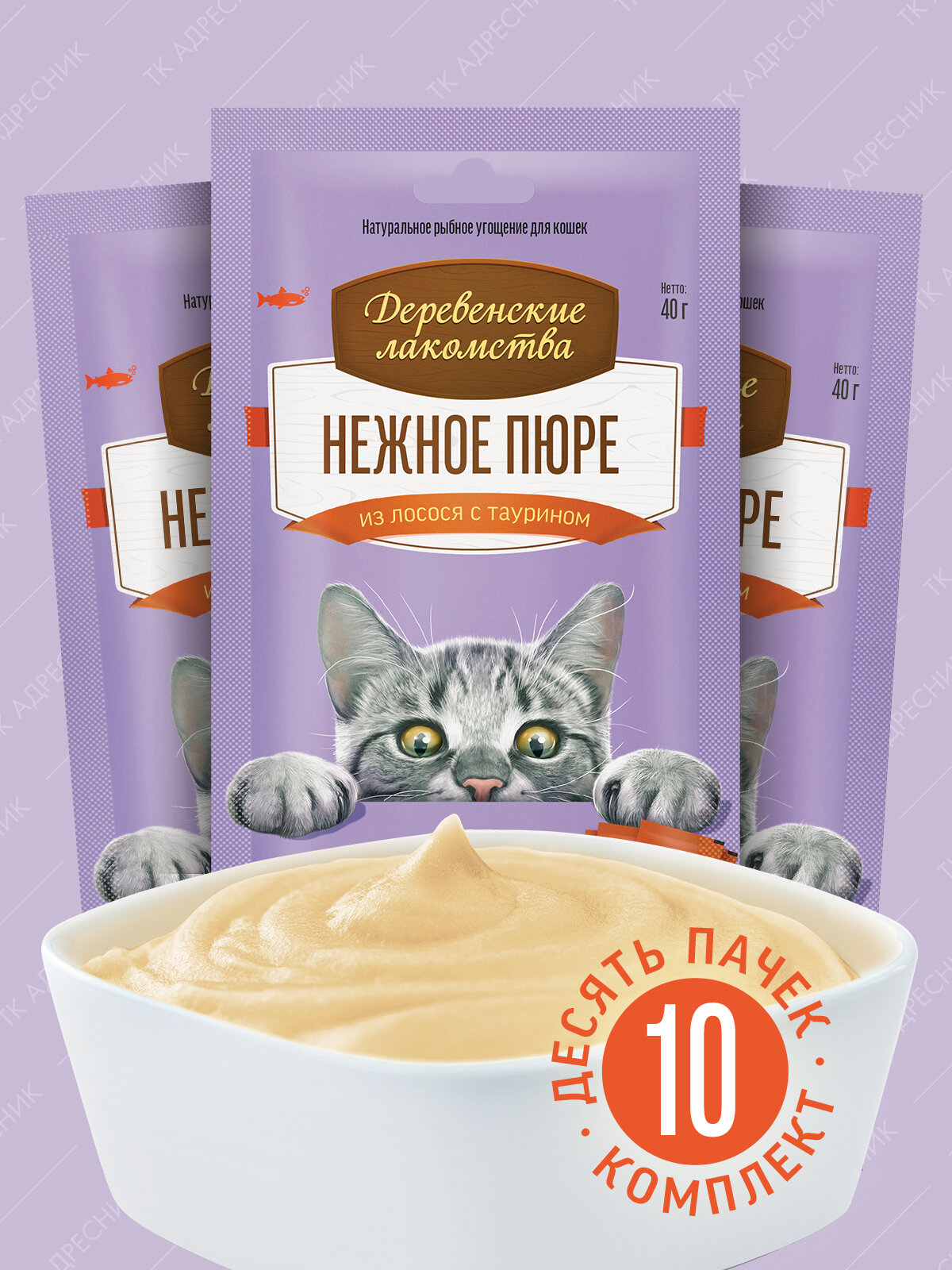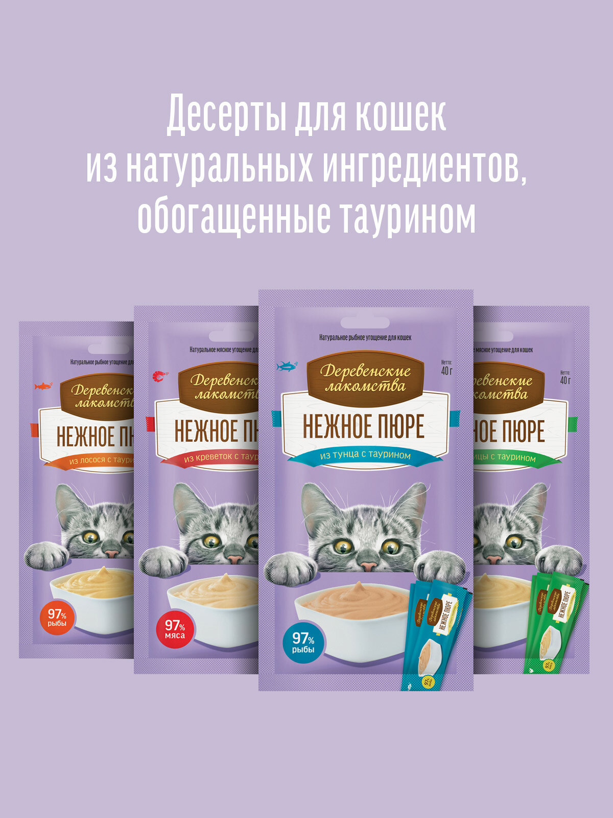 Купить Деревенские лакомства д/кошек Нежное пюре из лосося 4шт*10г (10 упак.) с доставкой по всей России. Деревенские лакомства д/кошек Нежное пюре из лосося 4шт*10г (10 упак.): сравнение цен, характеристики, фото, актуальное наличие и цены.