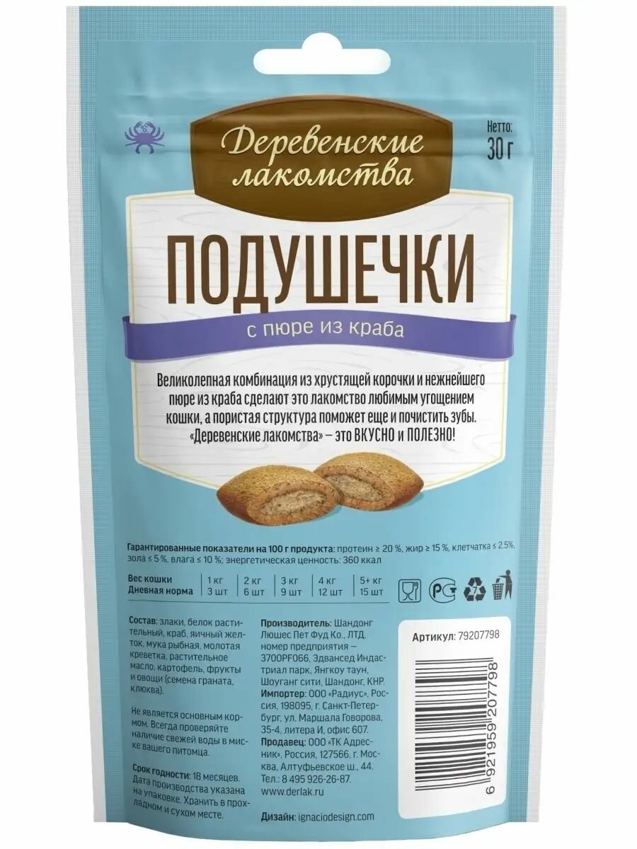 Великолепная комбинация из хрустящей корочки и нежнейшего натурального пюре из краба делают это лакомство любимым угощением кошки, а пористая структура помогает питомцу чистить зубы.