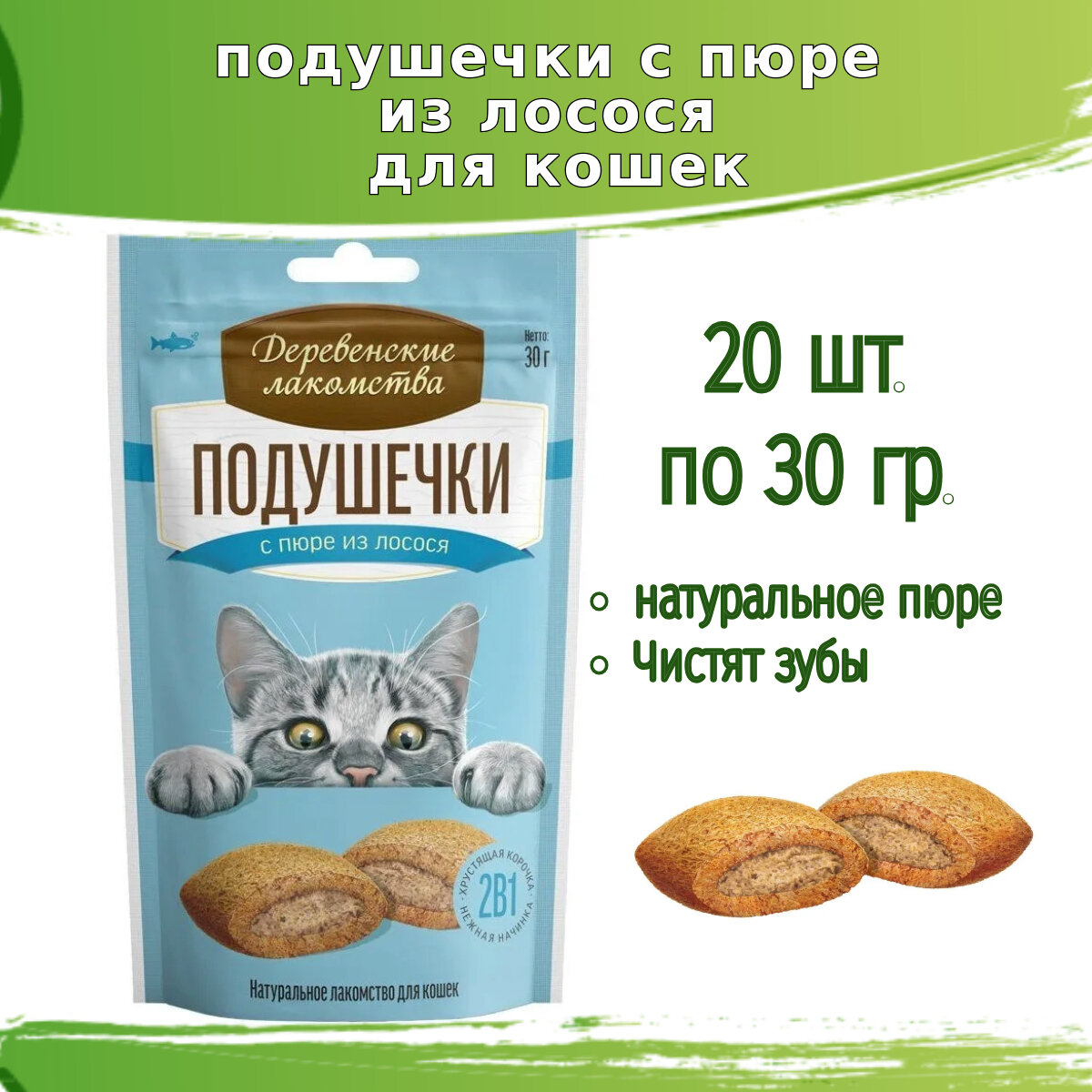 Купить Деревенские лакомства 20шт х 30г подушечки с пюре из лосося, для кошек с доставкой по всей России. Деревенские лакомства 20шт х 30г подушечки с пюре из лосося, для кошек: сравнение цен, характеристики, фото, актуальное наличие и цены.