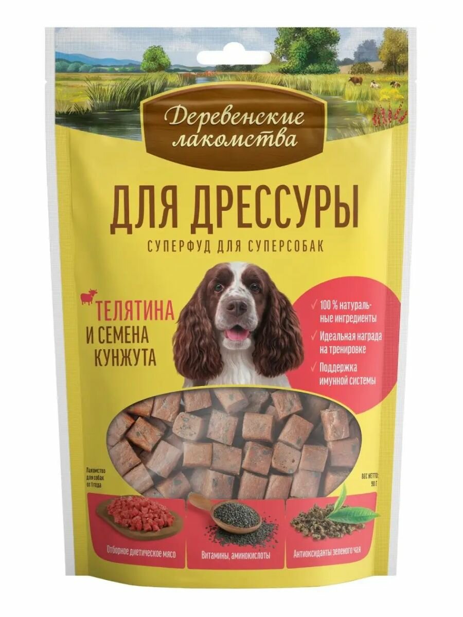 Лакомство для дрессуры собак всех пород «Деревенские лакомства» Телятина и семена кунжута, 90 гр. х10 шт.: сравнение цен, характеристики, фото, актуальное наличие и цены.